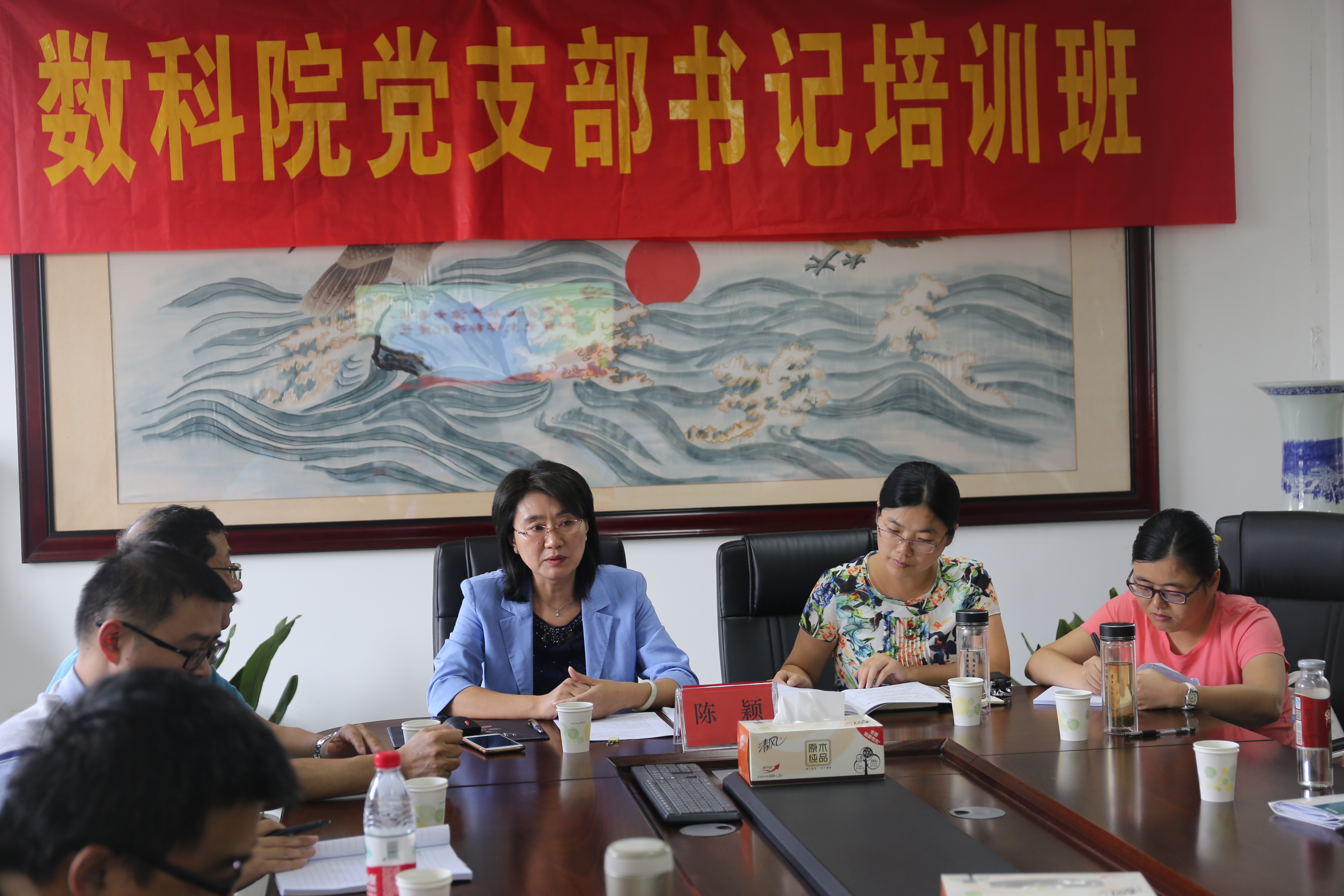 为深入学习党的十九大精神,贯彻落实全面从严治党要求,扎实推进“两学一做”学习教育常态化制度化,提升教职工党支部书记、支委的理论水平和工作能力,发挥其在支部工作中模范带头作用,数科院党委举办了教职工党支部书记培训讲座。2018年9月29日下午,校党委组织部副部长、党校常务副校长陈颖为我院全体教工党支部书记、支委上了一场生动的党课。学院党委书记赵静亚、副书记喻华杰参加了培训会。培训会由院党委委员、党委秘书朱诚主持。