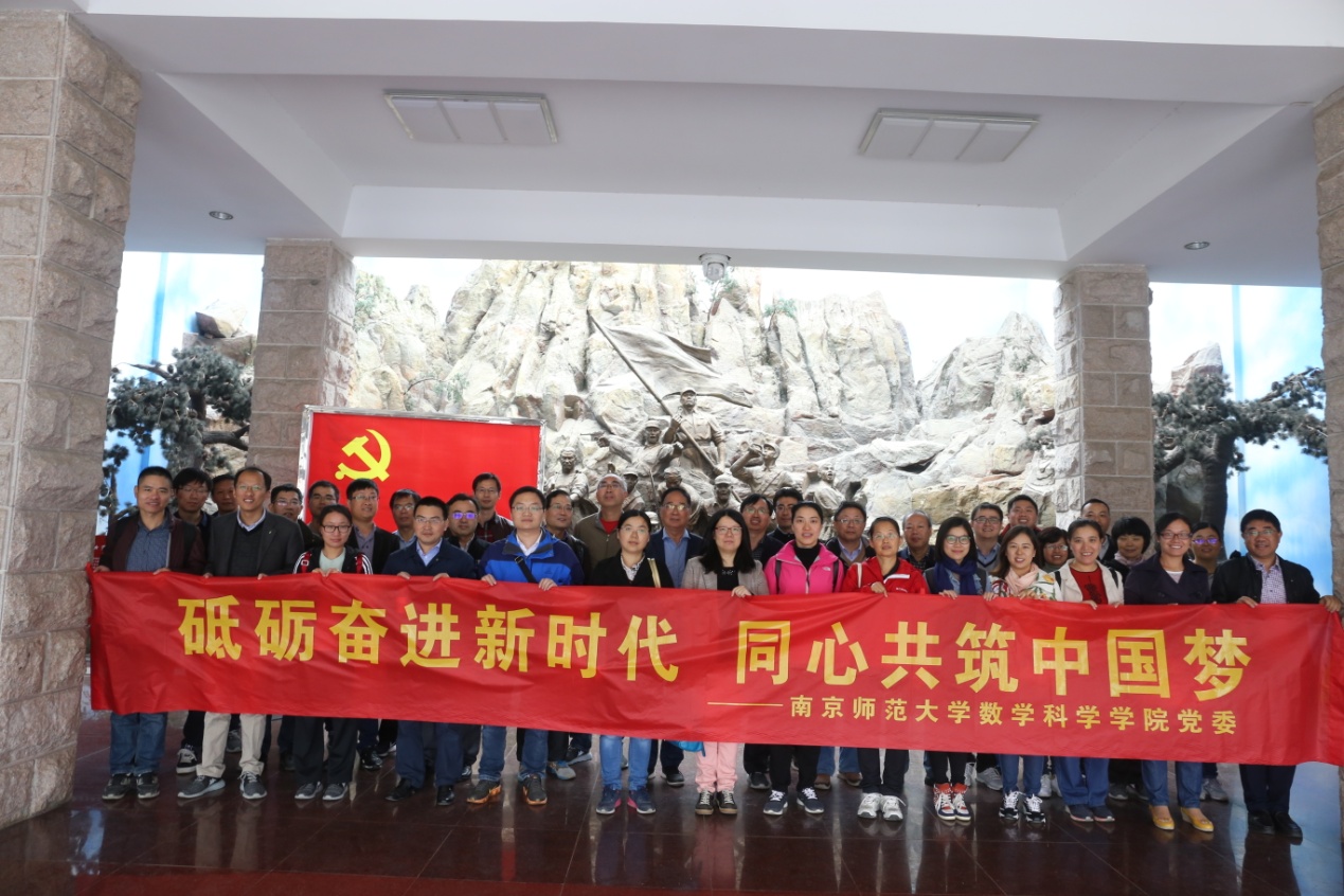 为深入学习党的十九大精神,进一步推进我院教工党员学习教育常态化制度化,不断提升全院教工思想政治素质,2018年11月3日上午,数科院党委组织教工党员赴句容茅山开展以“砥砺奋进新时代,同心共筑中国梦”为主题的党员教育活动。数科院党委书记赵静亚率队参观了茅山新四军纪念馆,缅怀了老一辈无产阶级革命家的丰功伟绩。学院部分民主党派成员受邀参加了教育活动。